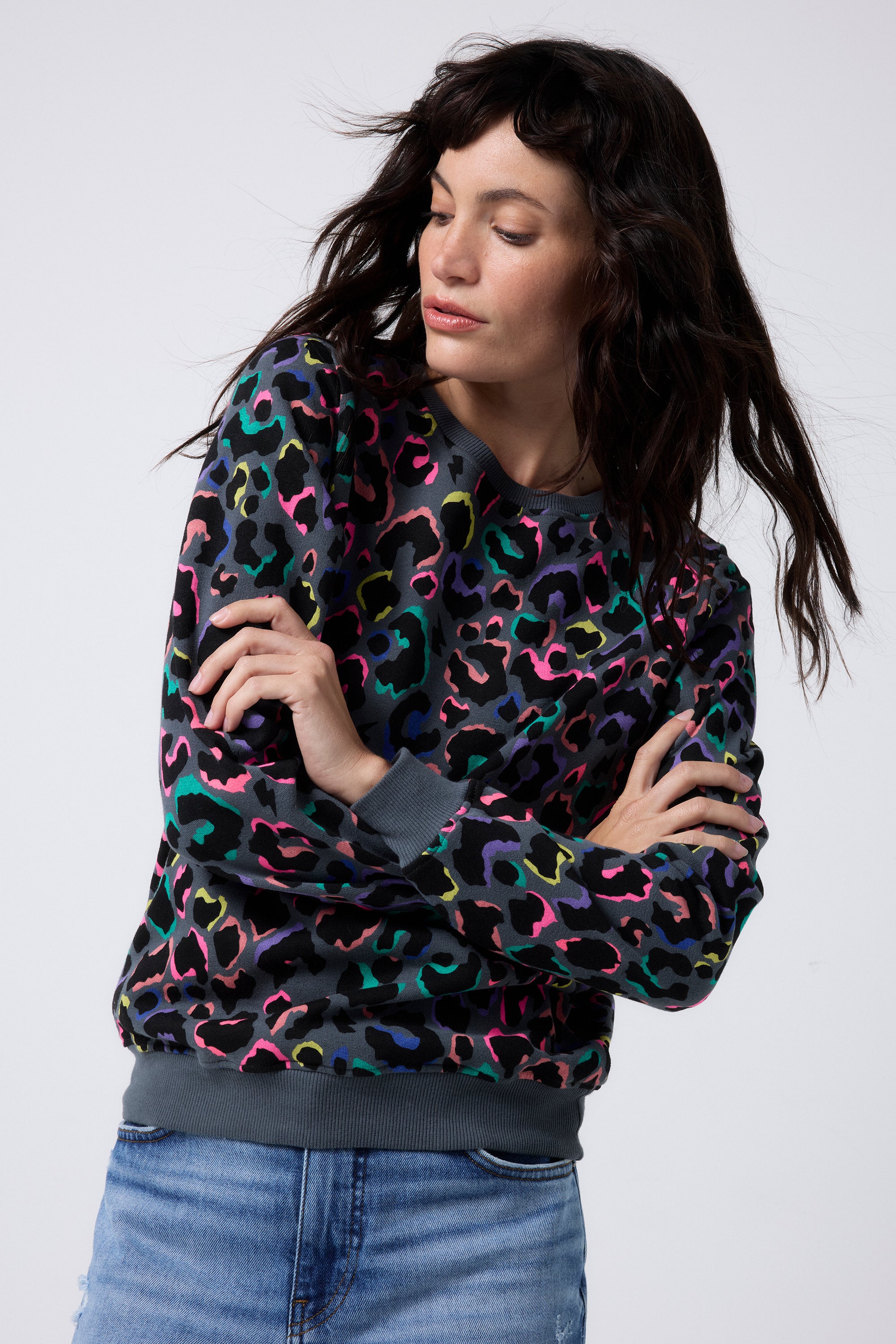Grey with Rainbow Shadow Leopard Classic Sweatshirt