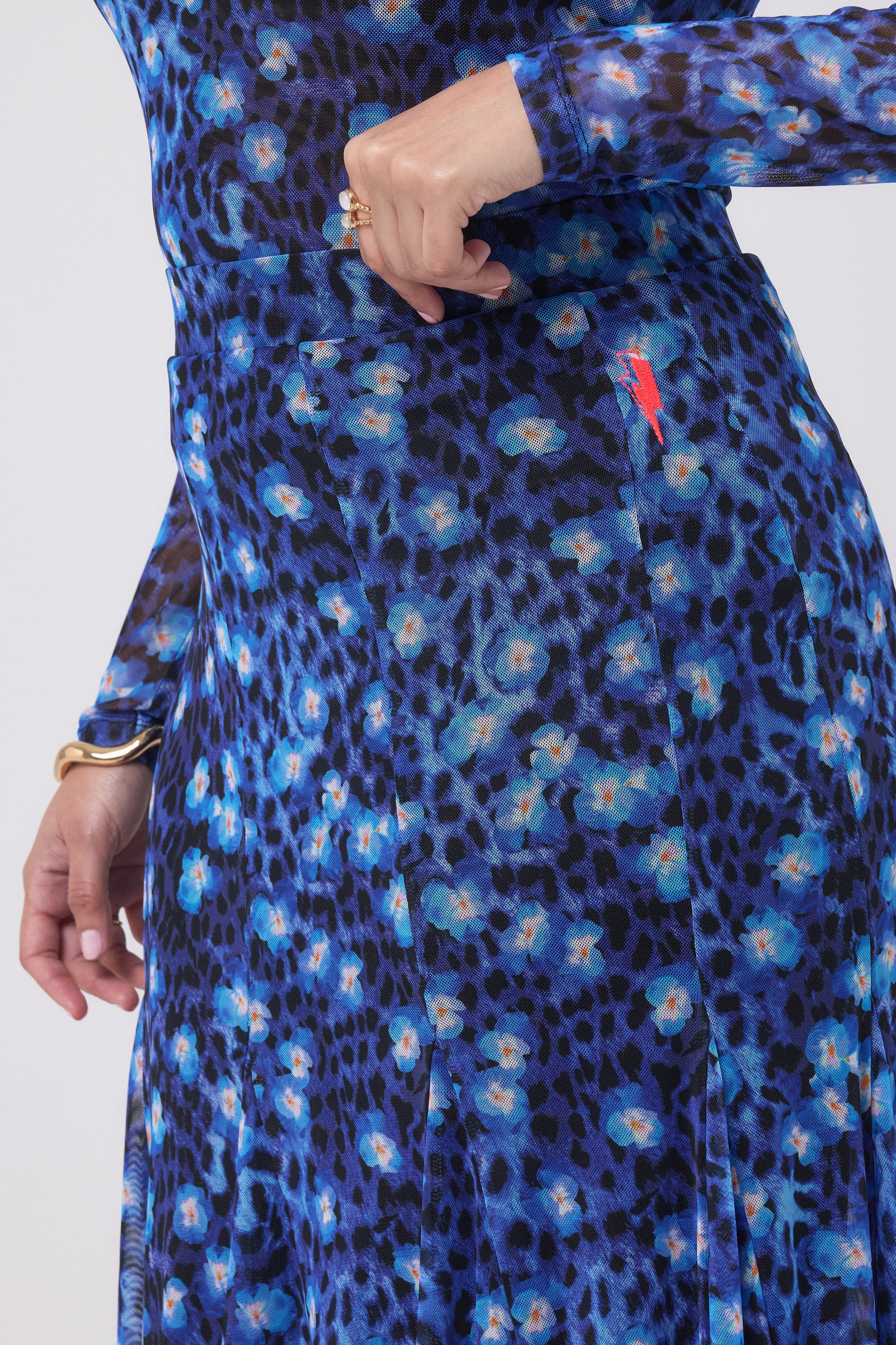 Featuring our striking Blue Paradise cheetah print, this mesh midi skirt is crafted from super-soft mesh and designed with an elasticated waistband for all-day comfort. It’s finished with a jersey lining for coverage while keeping the mesh’s fluid drape. Style with one of our graphic tees for an effortless look, or wear with the matching top for the ultimate co-ord.