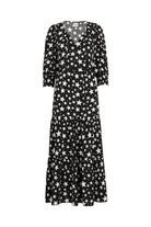 For easy, effortless style in one, slip into our black with white star and lightning bolt print tie front maxi dress. One of our metallic bags will add a splash of colour to the monochrome colourway.