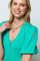 Green Shirred Zip Detail Midi Dress