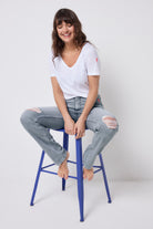 Meet your new wardrobe staple: the boyfriend jean in a grey wash. Perfect for days when you want to keep it casual but effortless, style this distressed pair with a graphic tee or a broderie blouse and ballet flats.