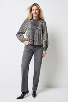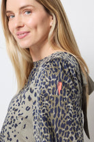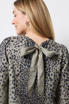 Khaki with Black Wild Leopard Blouson Sleeve Top
