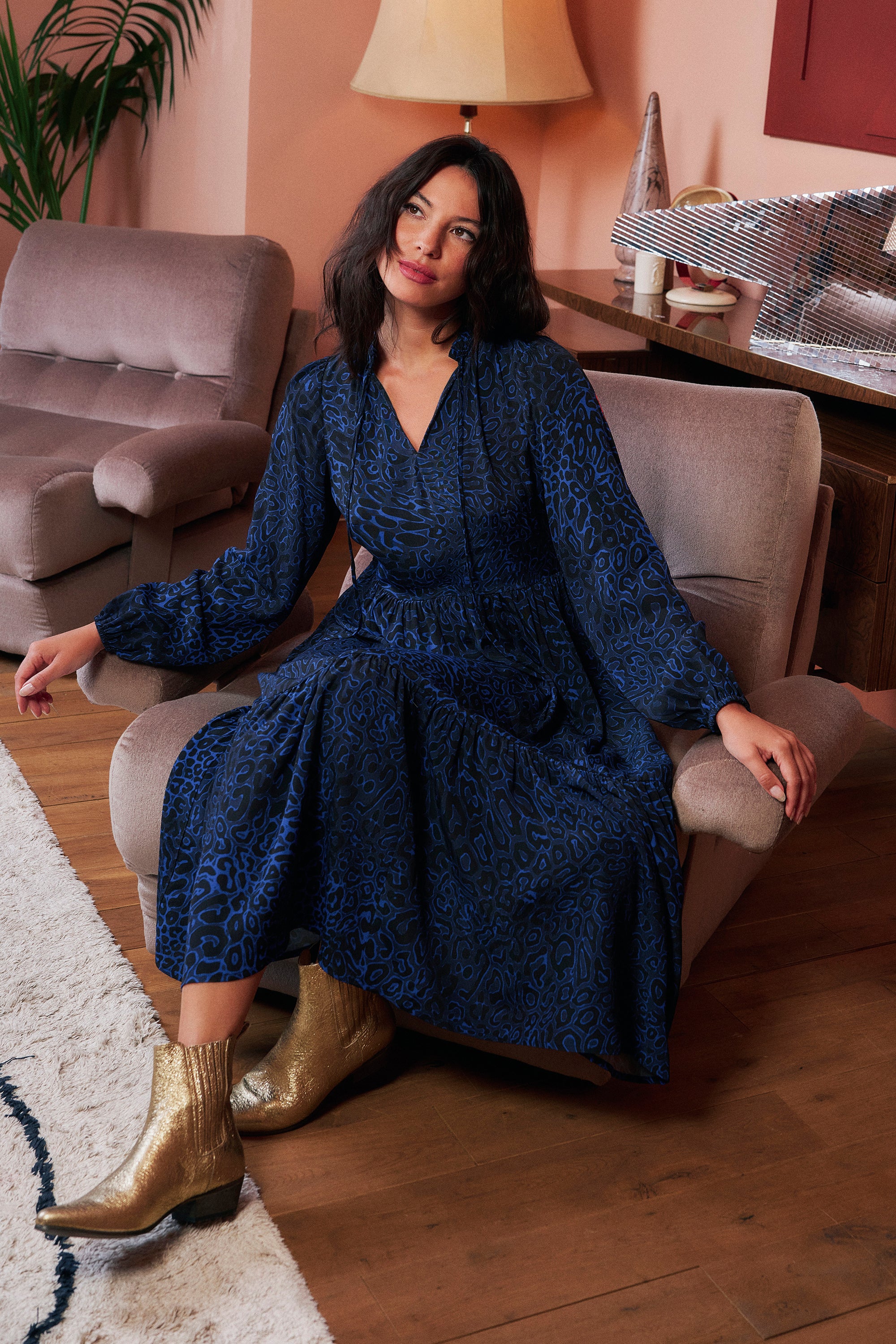 Your new favourite throw-on-and-go dress is here. Made to go from work to weekend without a fuss, thanks to the classic midi length, relaxed silhouette and rich navy hue with our leopard stingray-inspired print.