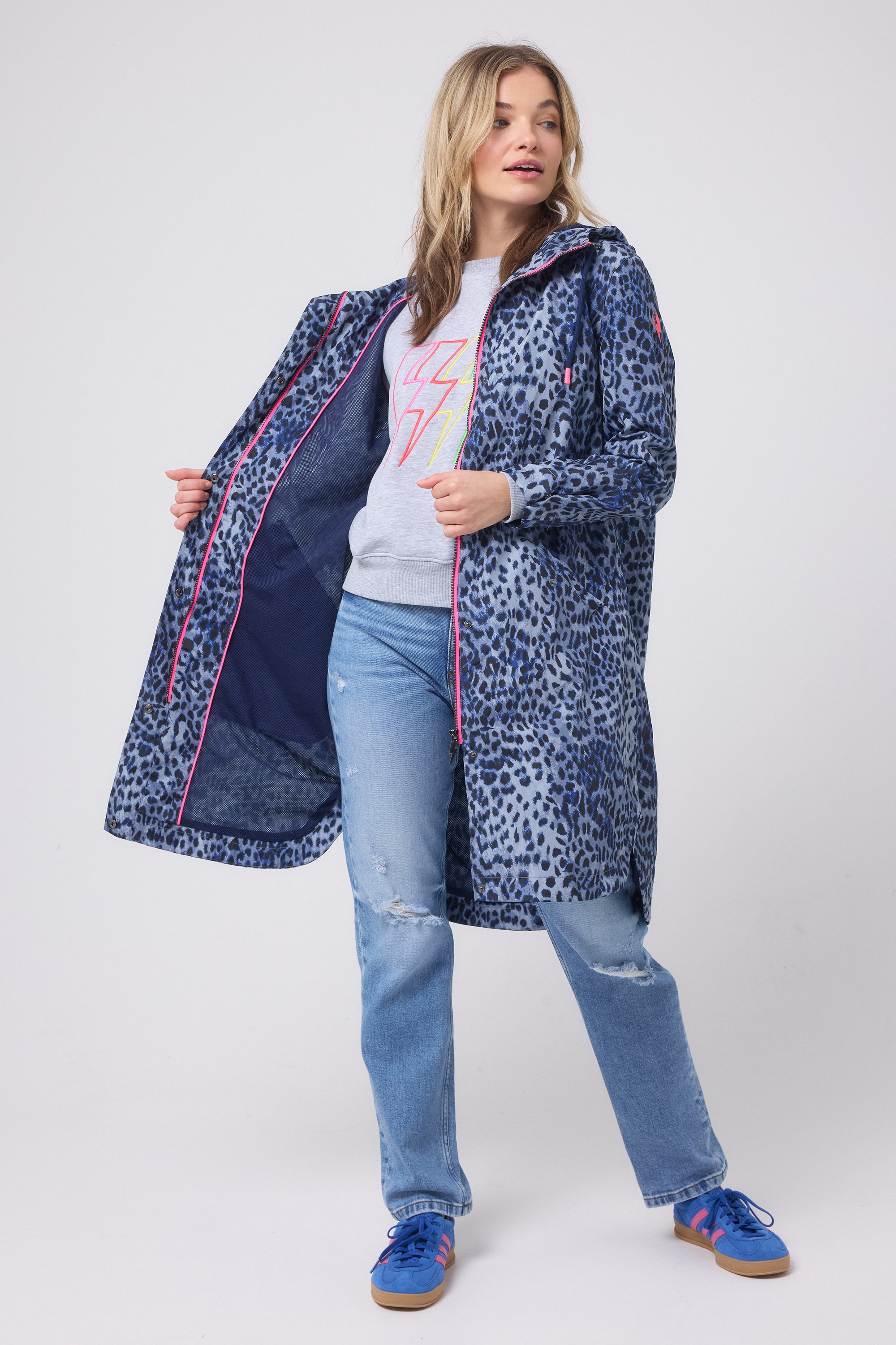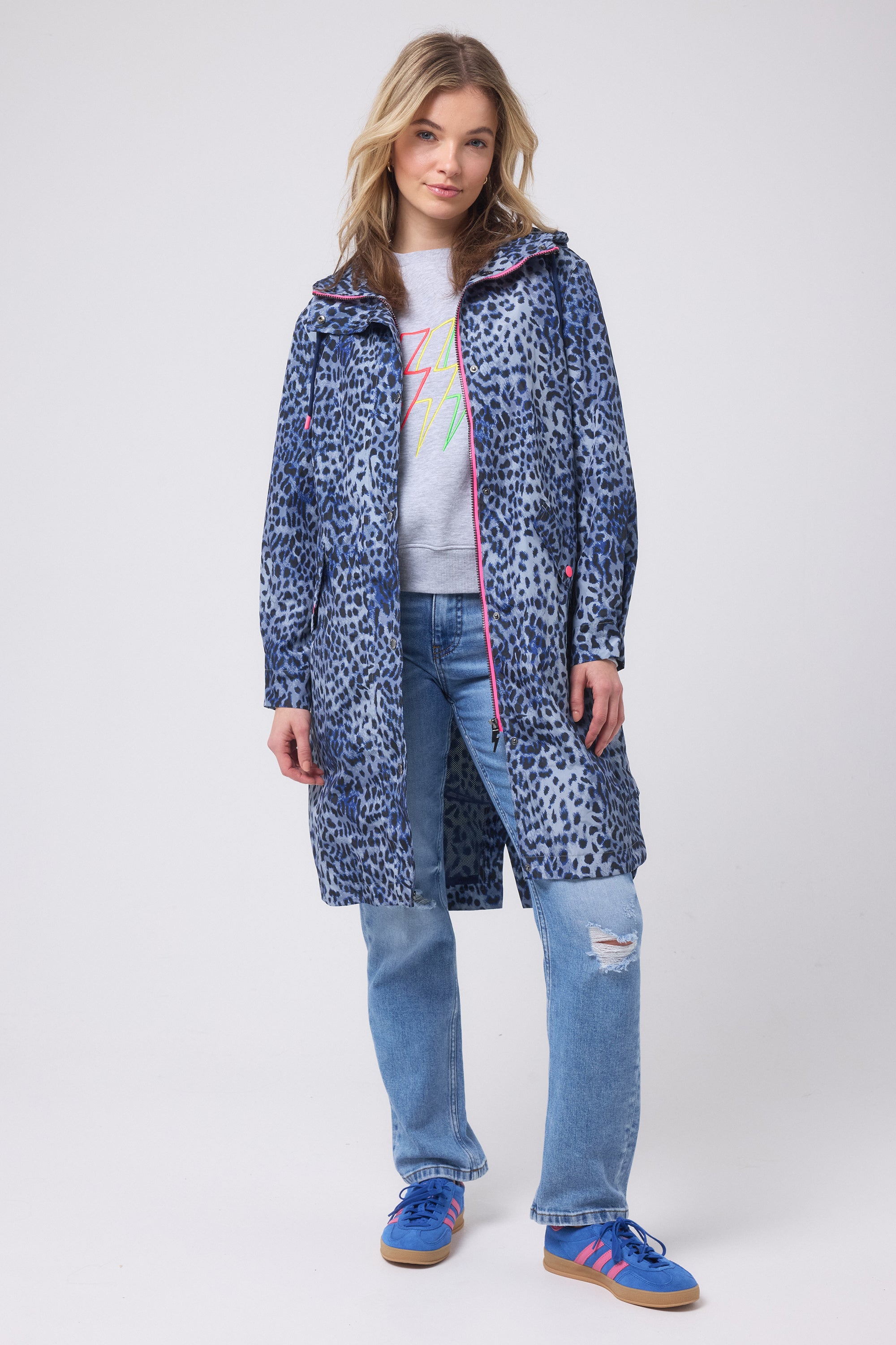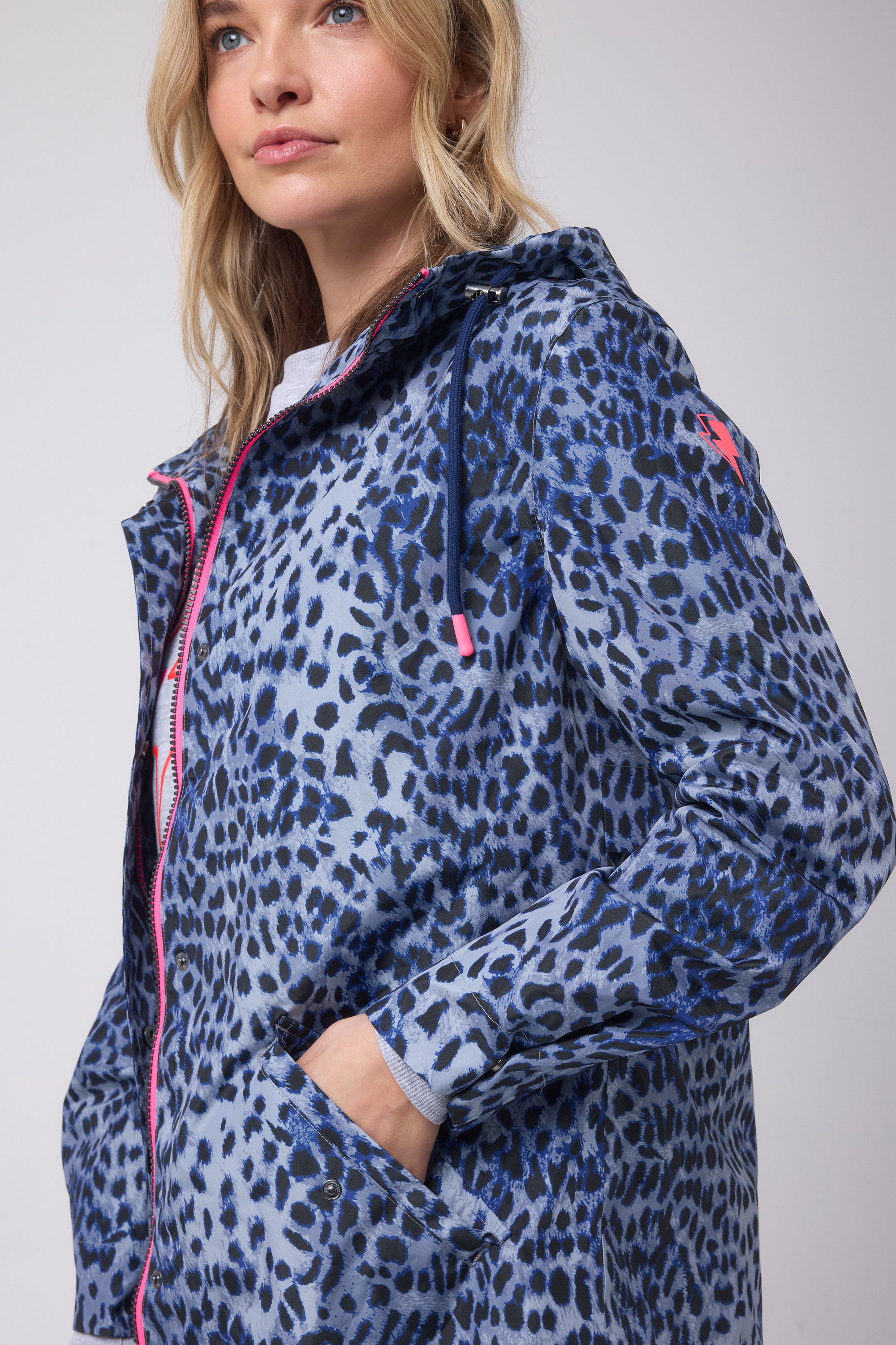 Our fully waterproof packaway navy raincoat that actually makes you want it to rain – just a little. Pack this cheetah print essential down into an easy pouch, and stay dry but stylish no matter the elements.