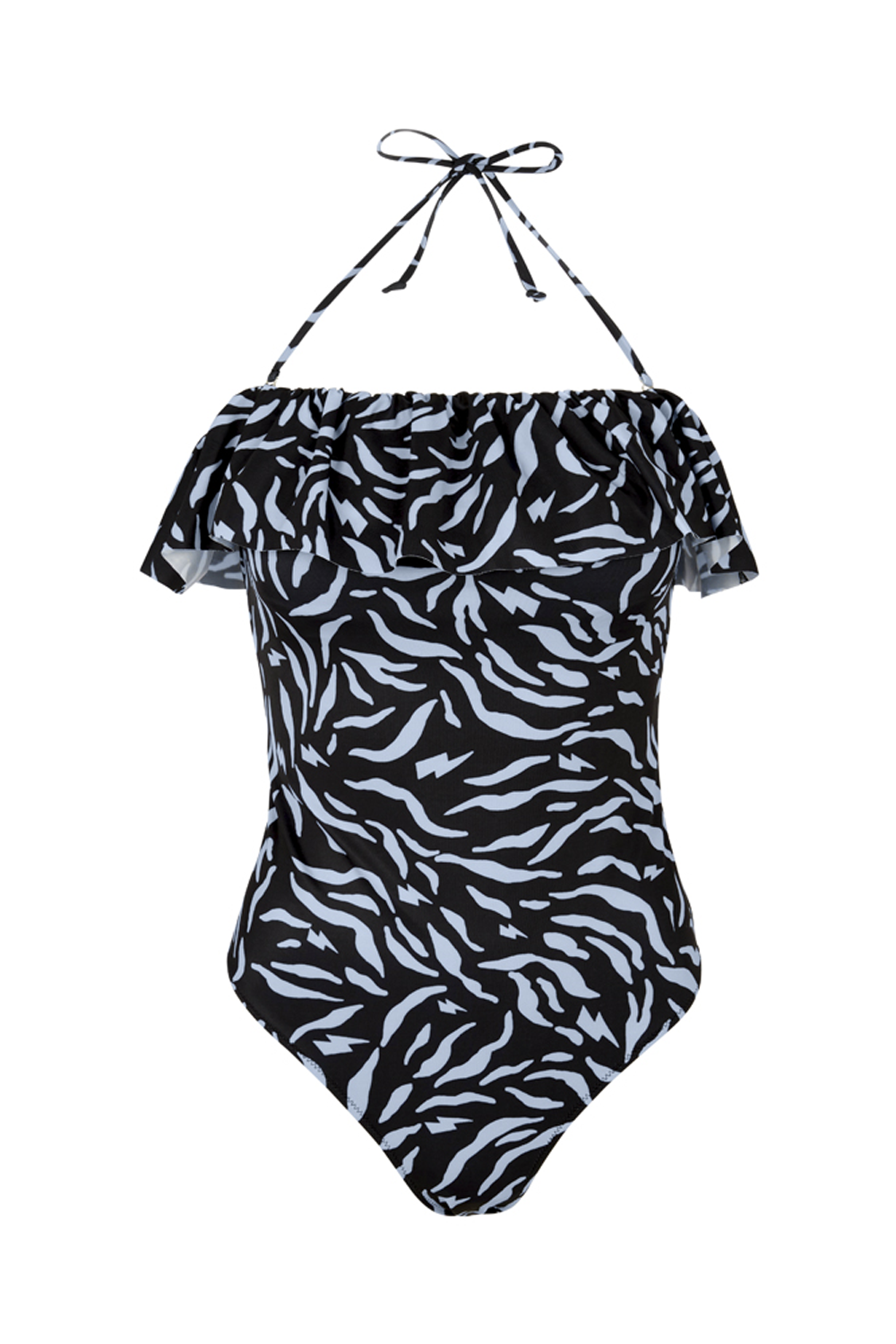 Cool wash at 30, do not bleach, iron or tumble dry. Rinse in fresh water after use. Garment may fade in direct sunlight or chlorinated water.