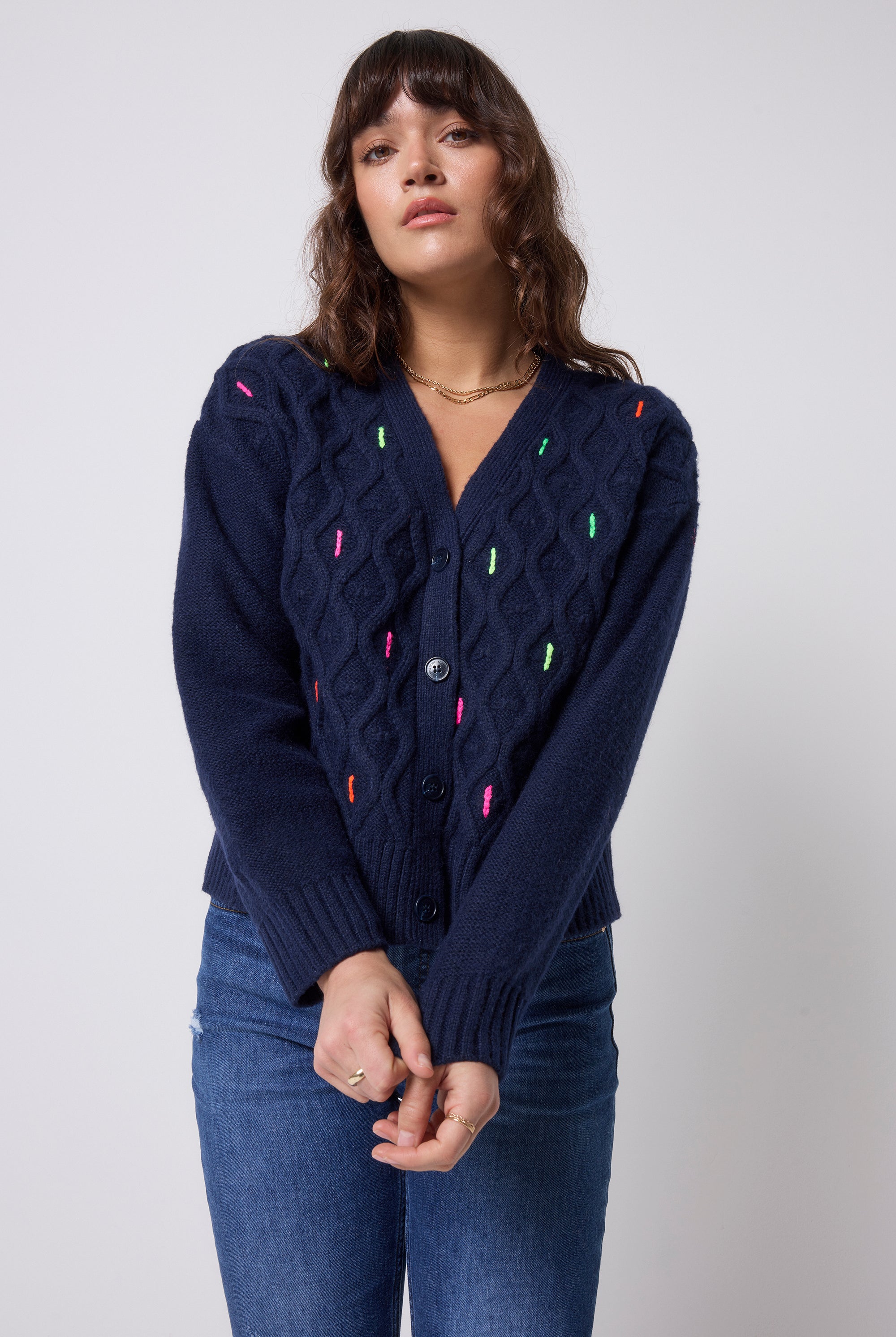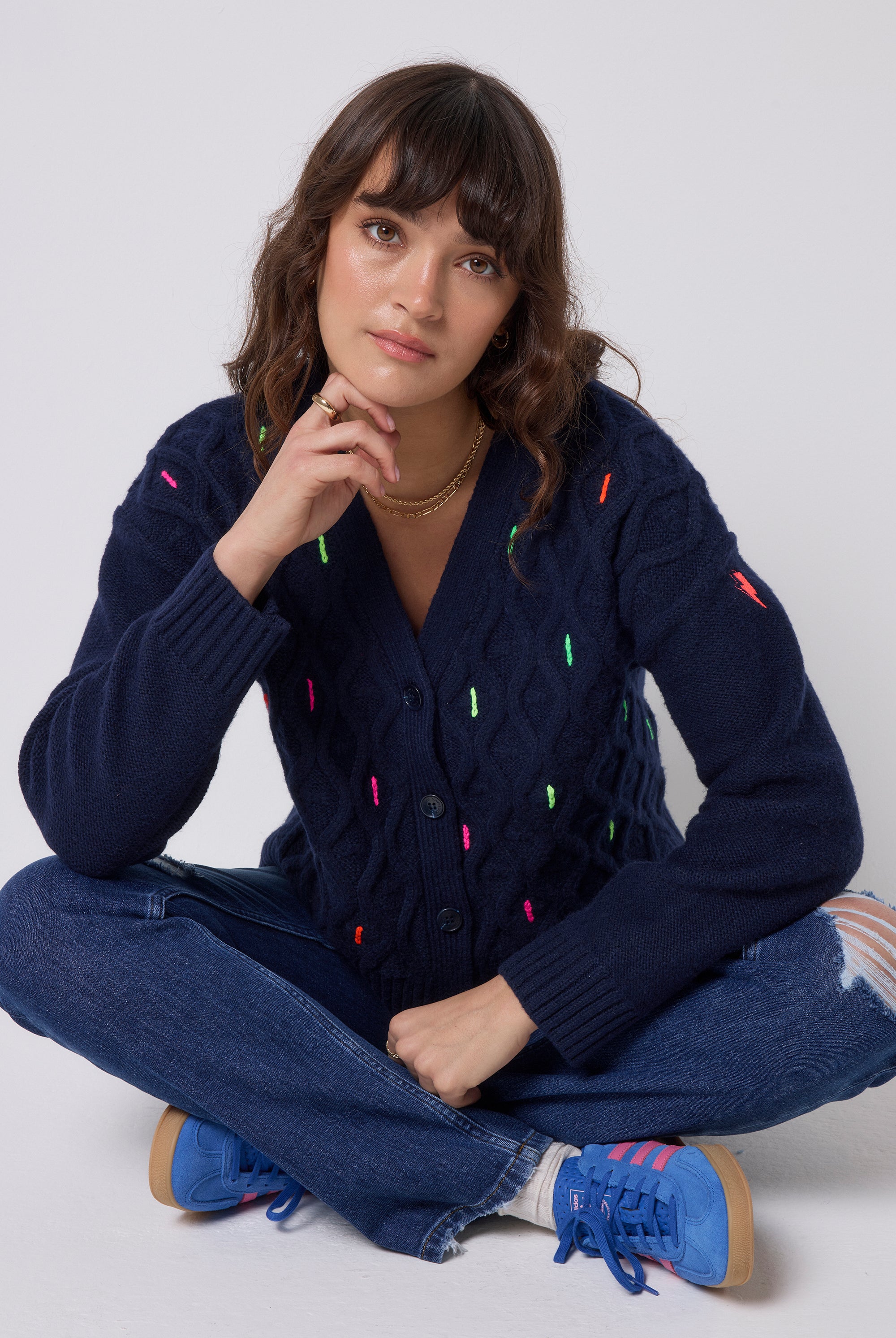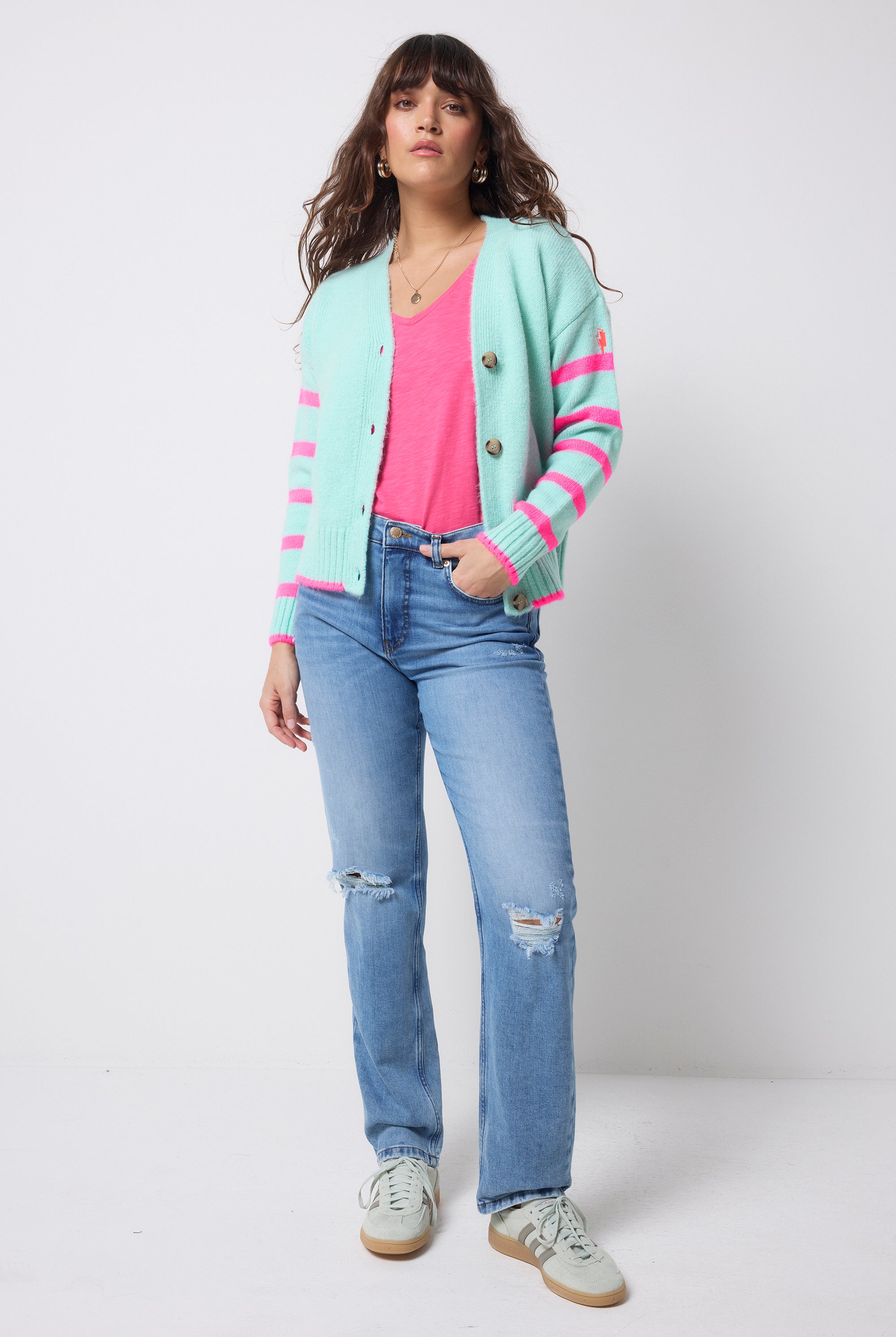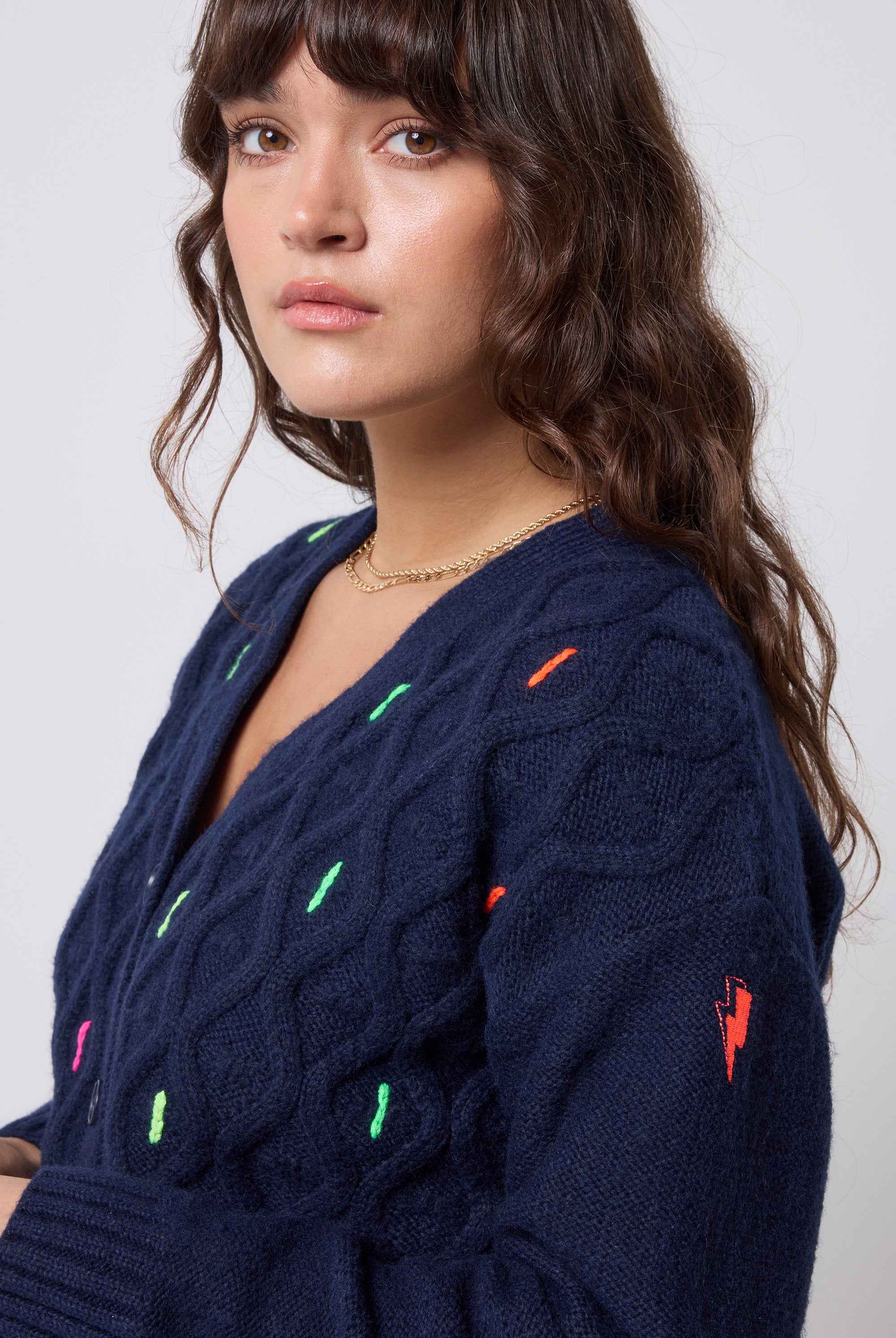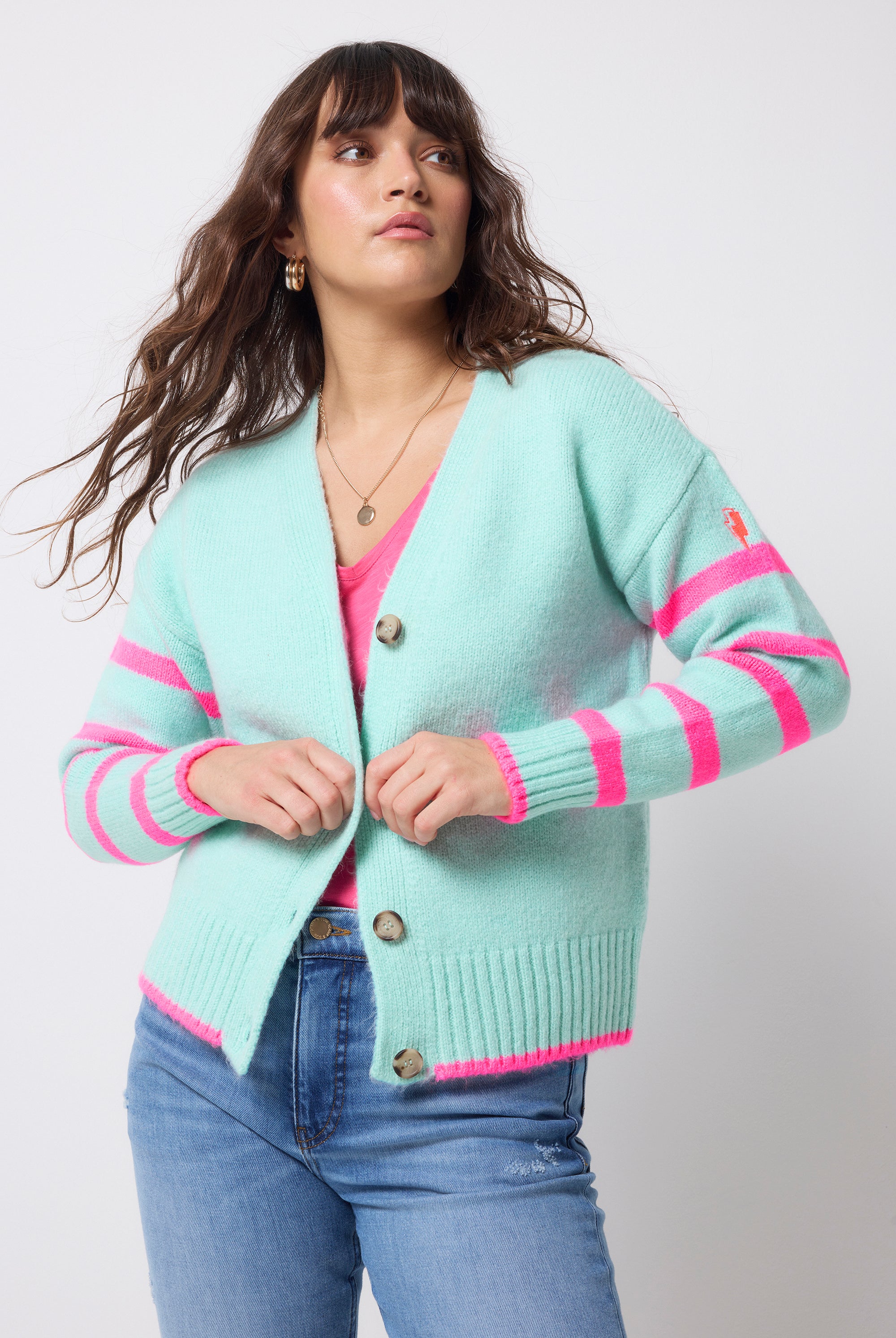 Our collection includes bright colourful knitwear with our neon pink embroidered lightning bolt on the arm. In striking vibrant designs, we offer leopard print jumpers, colourful jumpers, lightning bolt knitted jumpers and colourful cardigans that will suit any occasion. Our animal print cardigans are perfect for layering over our maxi dresses.