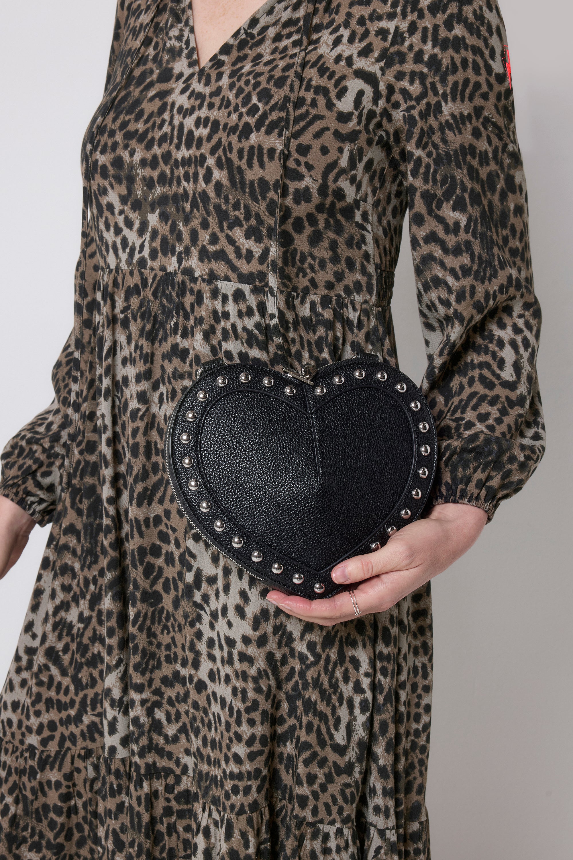 Make every outfit feel that little more fun with our faux leather black heart-shaped bag. Easy to throw on and just the right size for your essentials, it's the playful piece you'll wear on repeat.