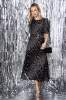 COMING SOON: Black with White Star Cluster Midi Dress
