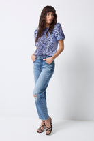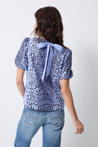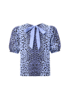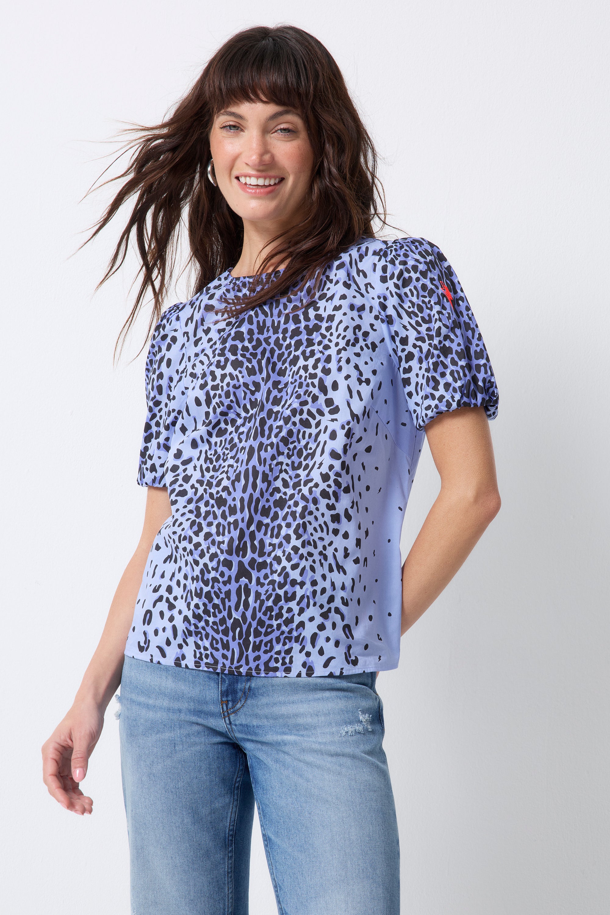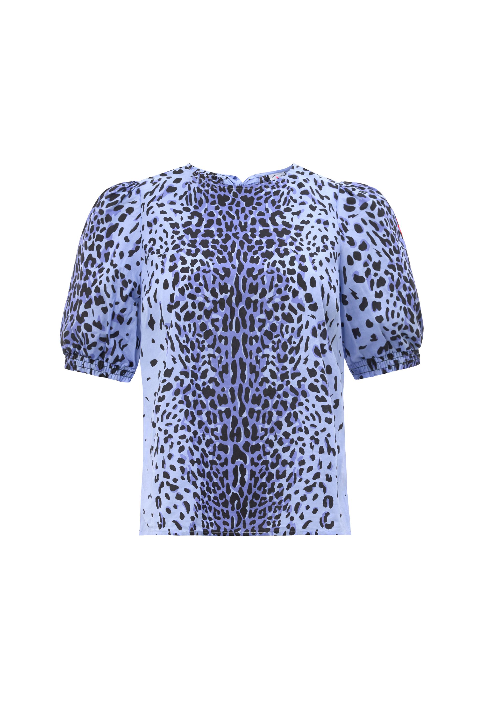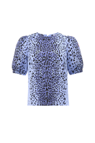 Blue with Black Wild Leopard Short Blouson Sleeve Top