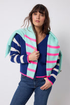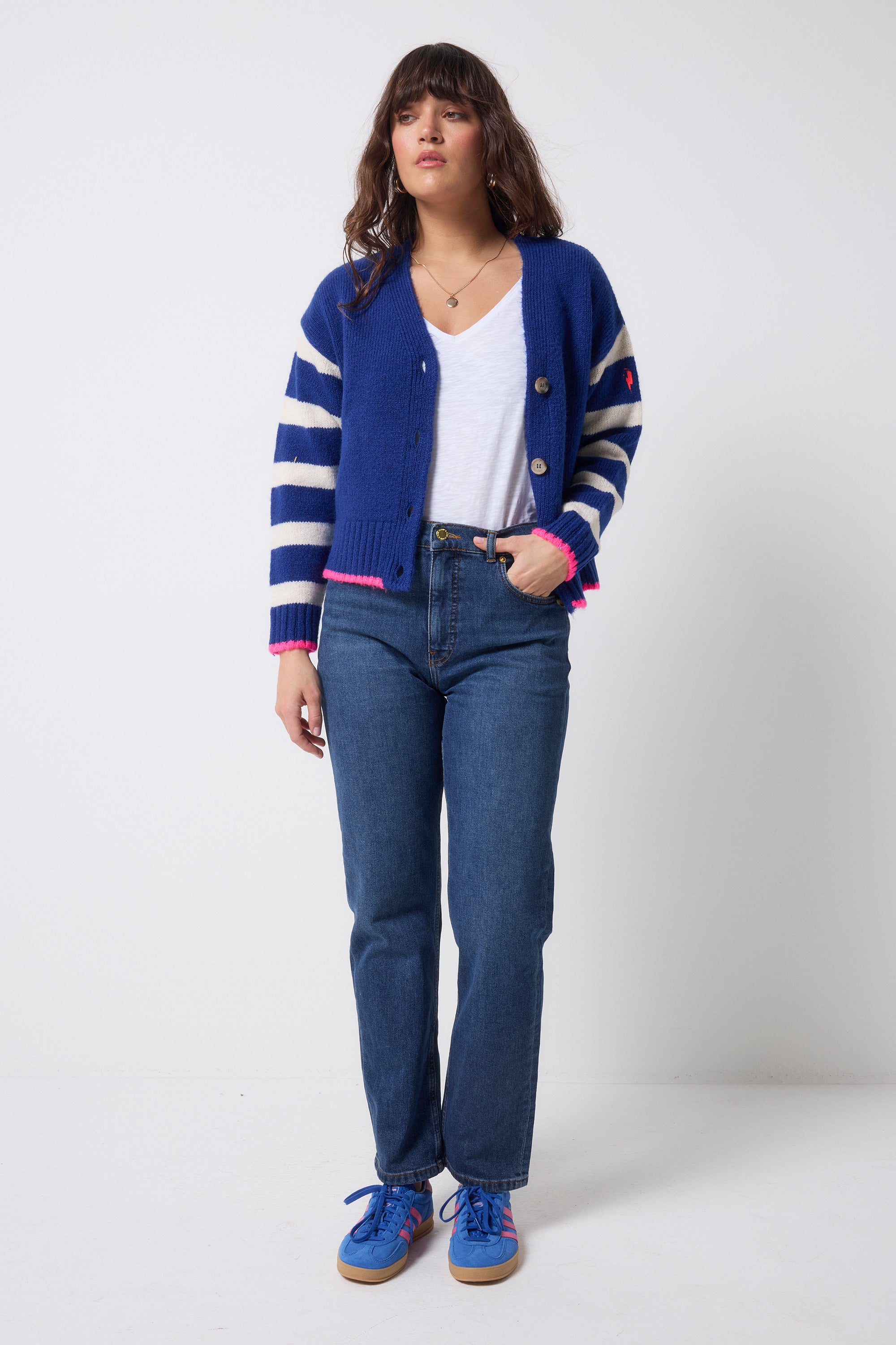 Print: COMING SOON: Bright Blue with Cream Stripe Cardigan