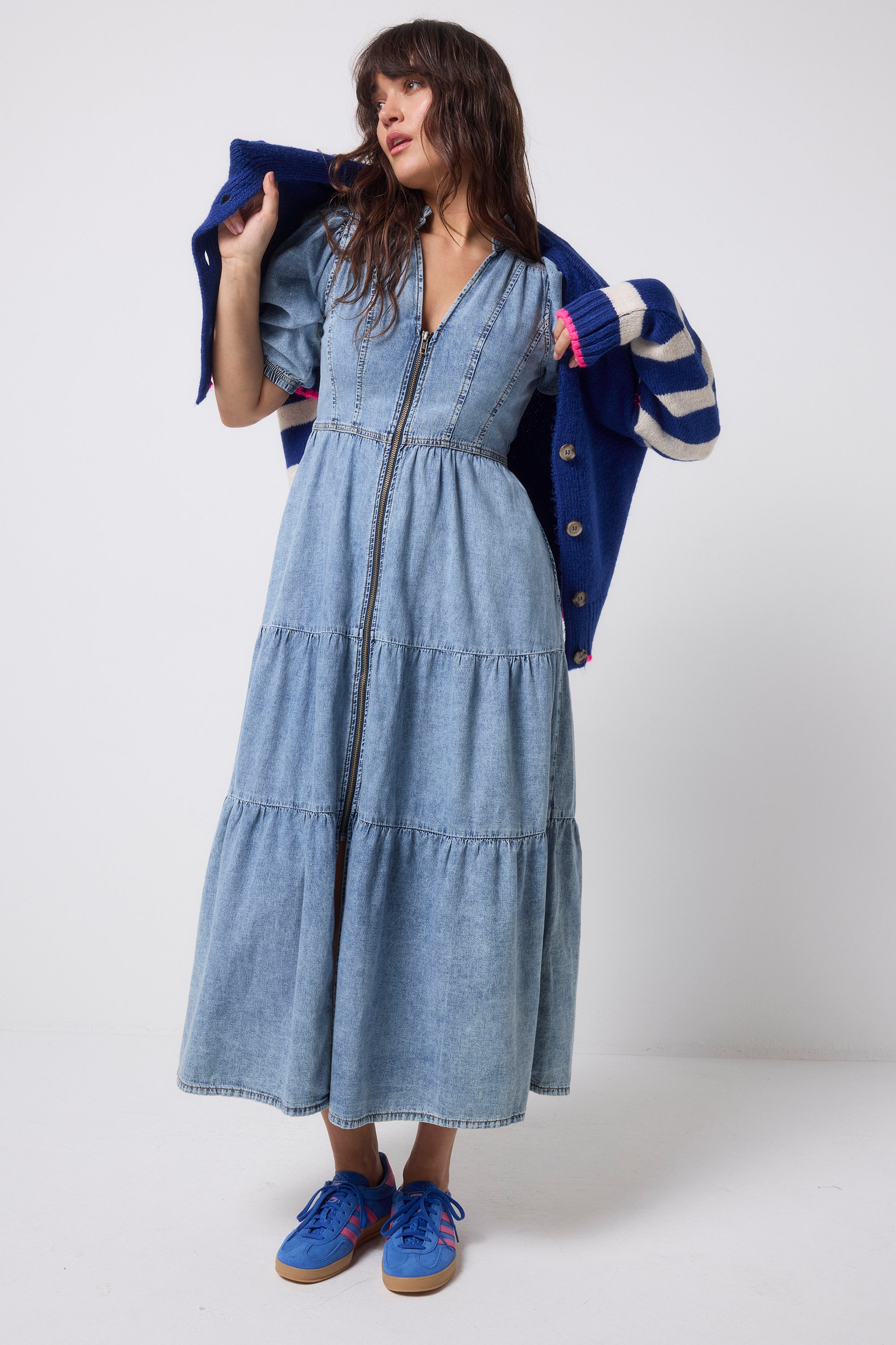 COMING SOON: Bright Blue with Cream Stripe Cardigan