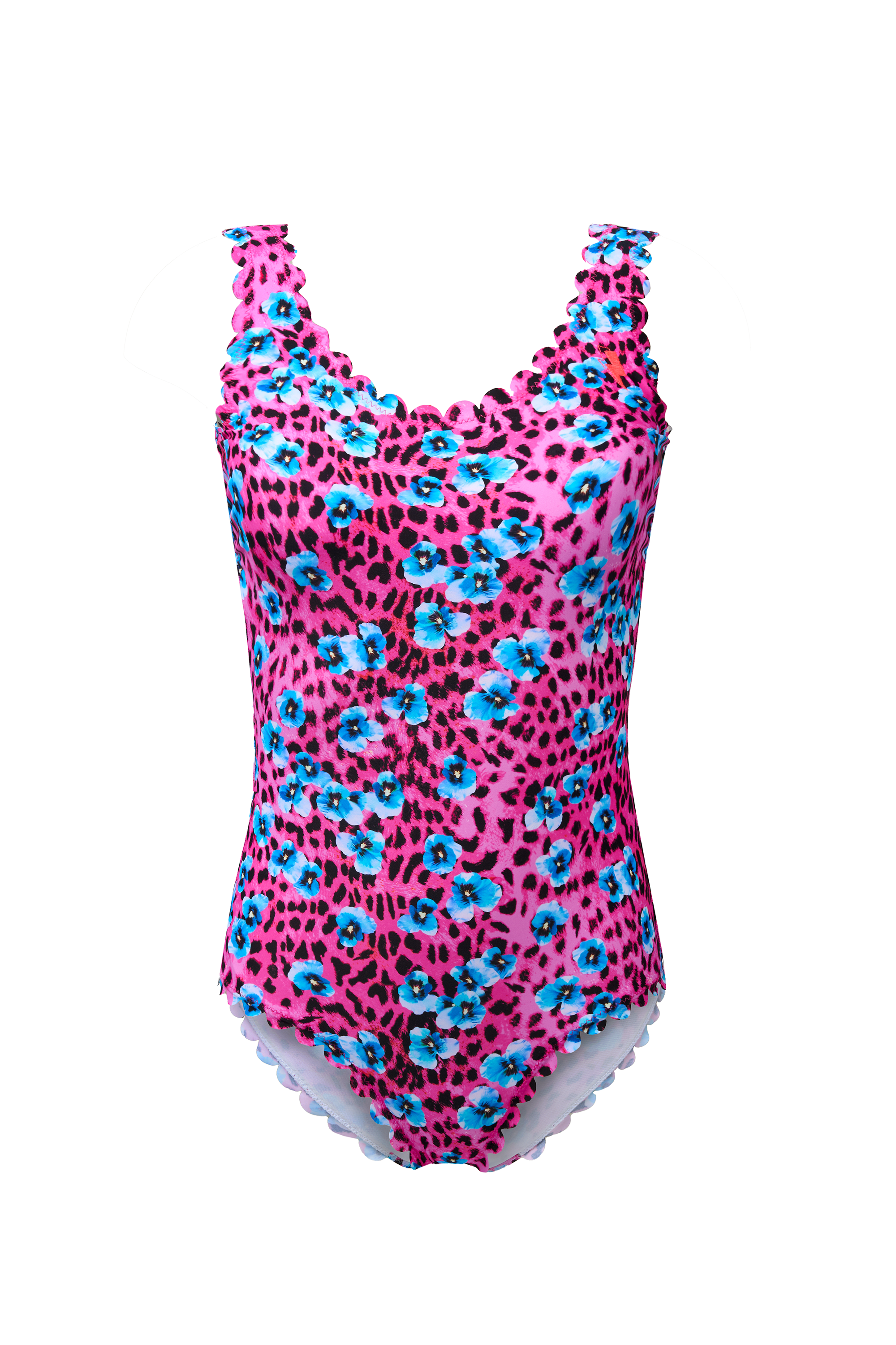 Bright Pink Paradise Cheetah Scallop Edge Swimsuit