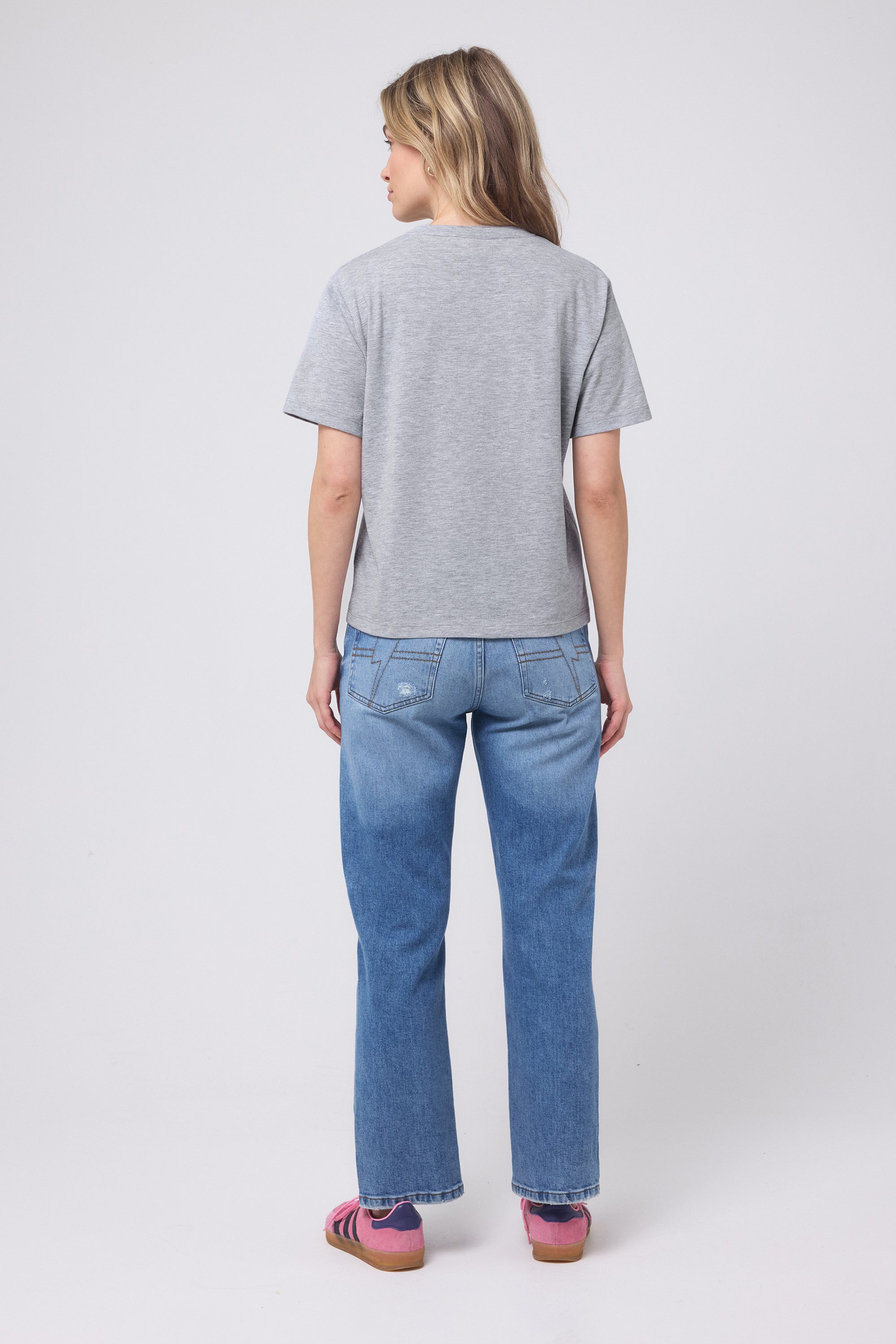 Celebrating our iconic lightning bolt with our signature neon graphic print, this grey marl tee is set to become your new off-duty staple. Designed in our new classic tee silhouette, it features an easy relaxed fit and a straight, hip-length cut for a modern, effortless shape that’s perfect for everyday wear.