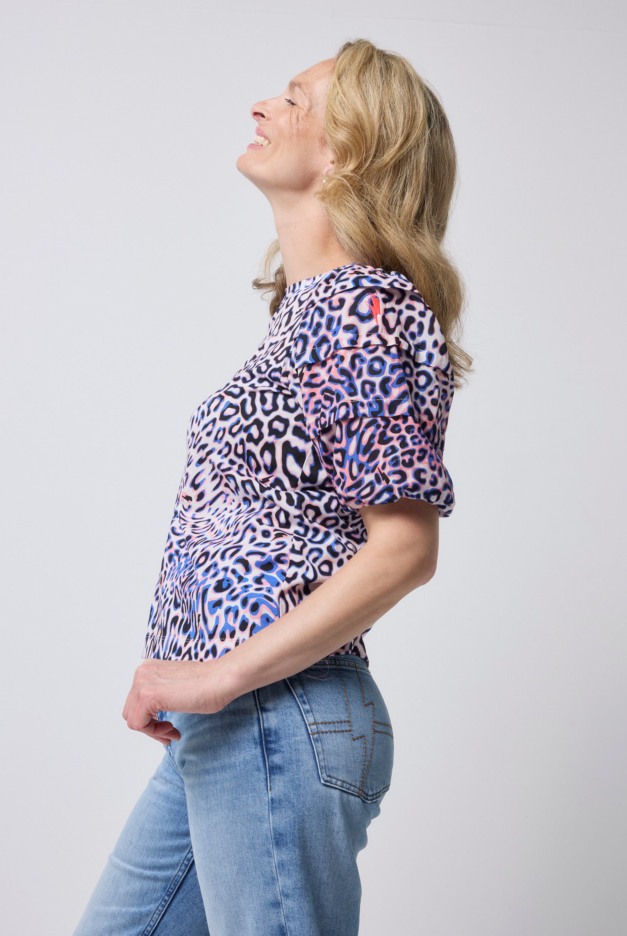 Crew neck T-shirts in super soft viscose or super soft organic cotton, with leopard and lightning bolt prints in stunning colours.