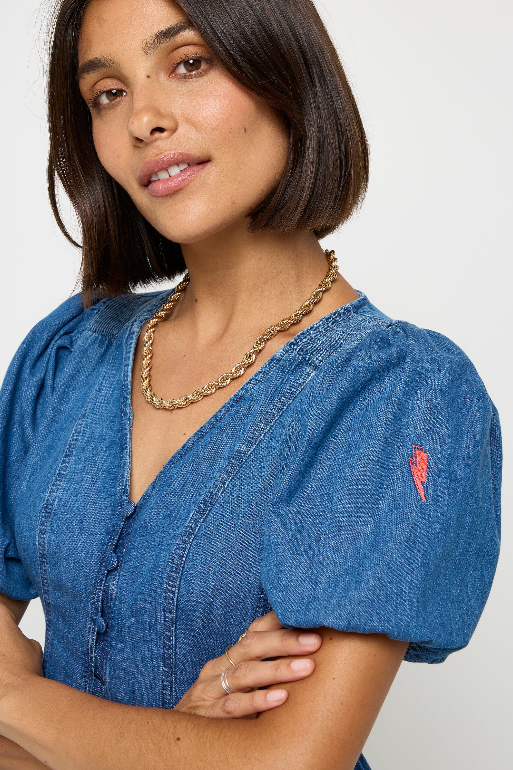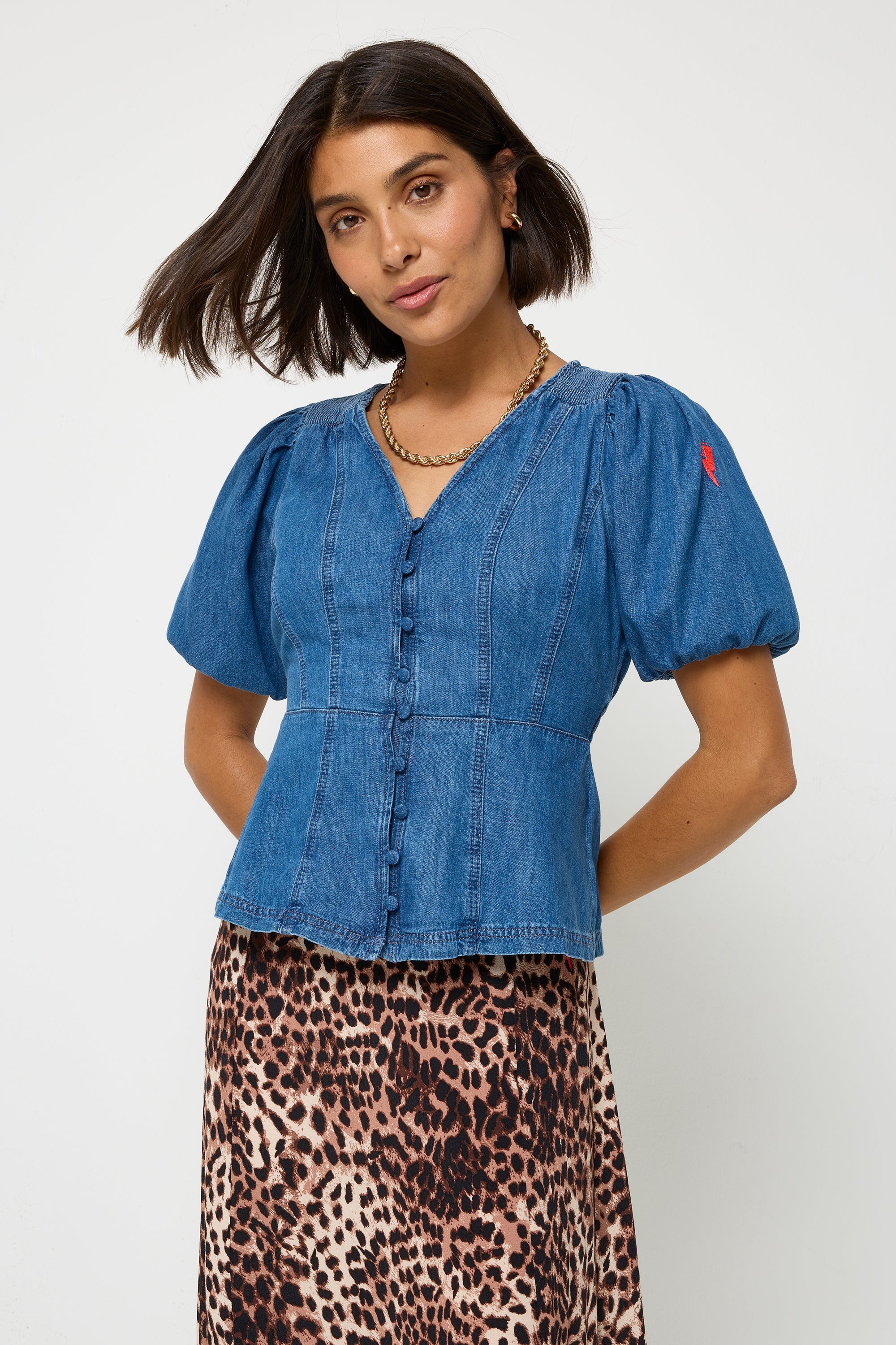 Make our indigo button through denim top your go-to for every plan. This denim looks great teamed with our mood-boosting prints.