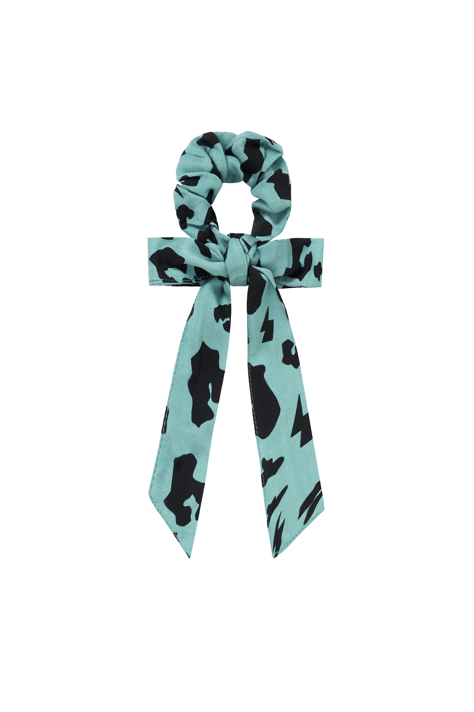 - Khaki bow scrunchie in our black leopard and lightning bolt print