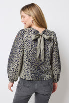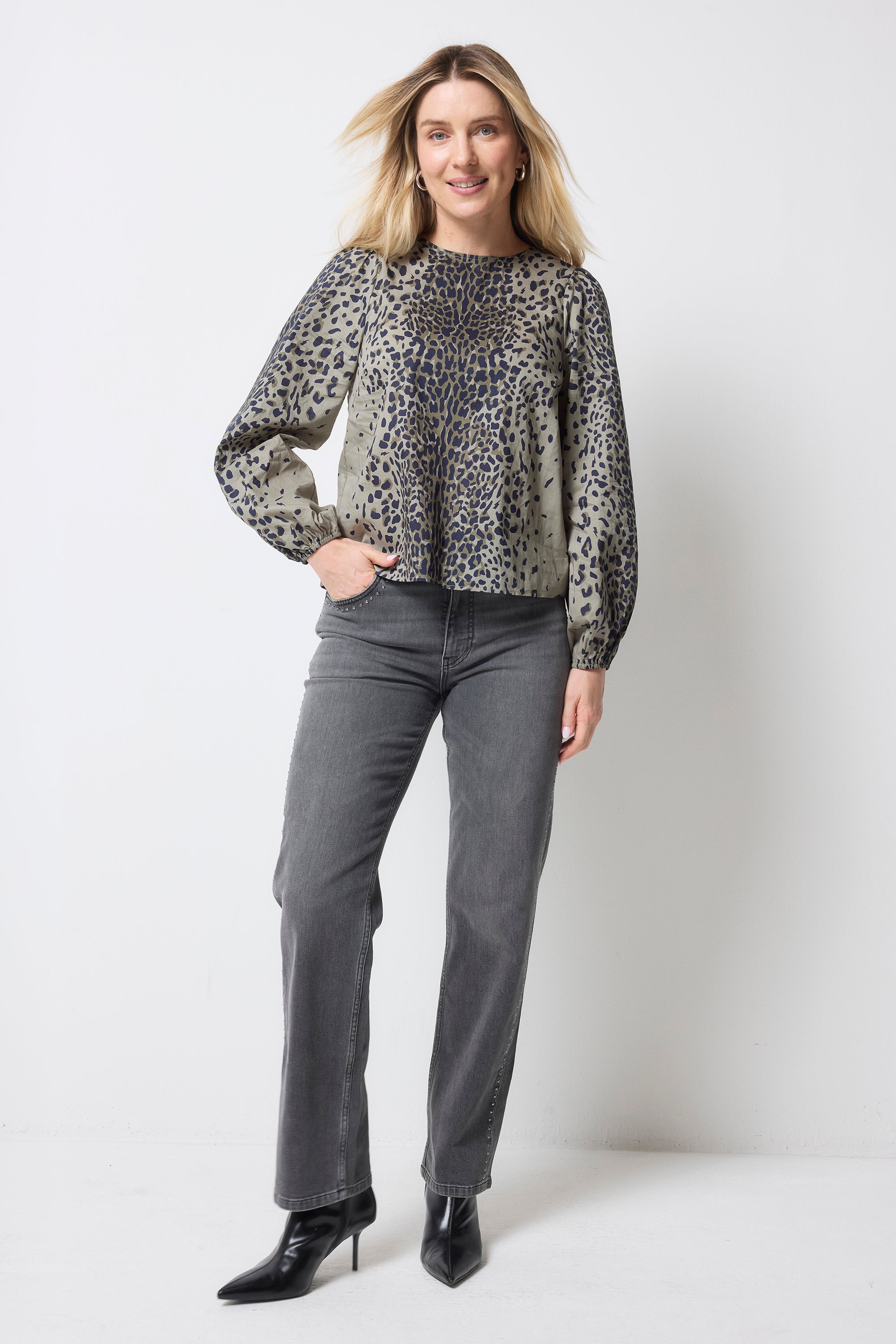 Khaki with Black Wild Leopard Blouson Sleeve Top