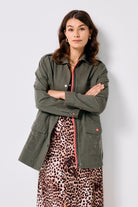We're wearing our khaki utility jacket all year round. We've designed it with all our favourite details, from the oversized studded lightning bolt on the back to spacious pockets - throw on over a leopard print dress when the sun goes down or layer over your outfits to beat the chill in cooler weather.