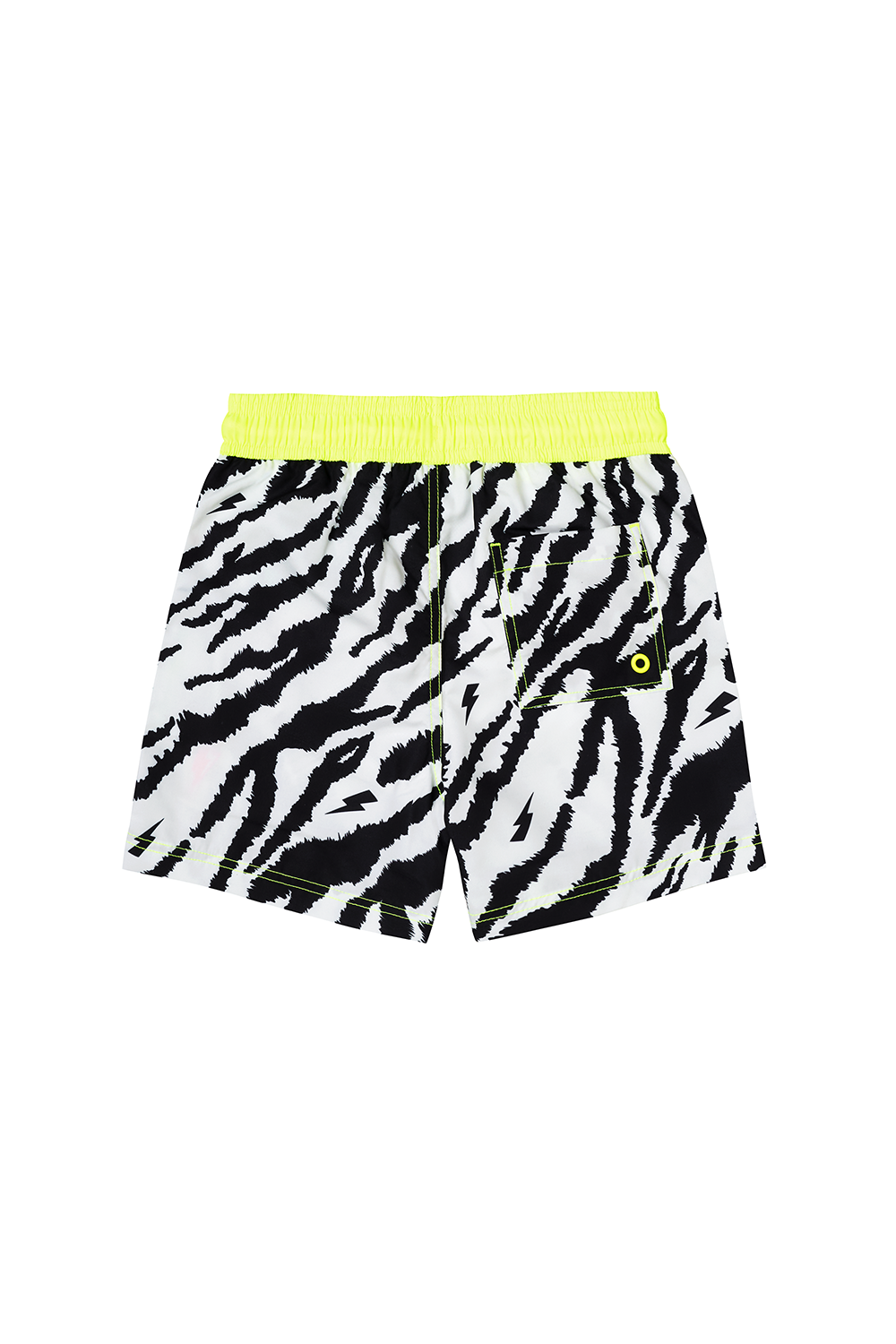• Boys Swim Shorts in Ivory with Black Shadow Tiger and Lightning Bolt Print