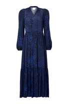 Navy Leopard Ray Blouson Sleeve Tie Front Midi Dress