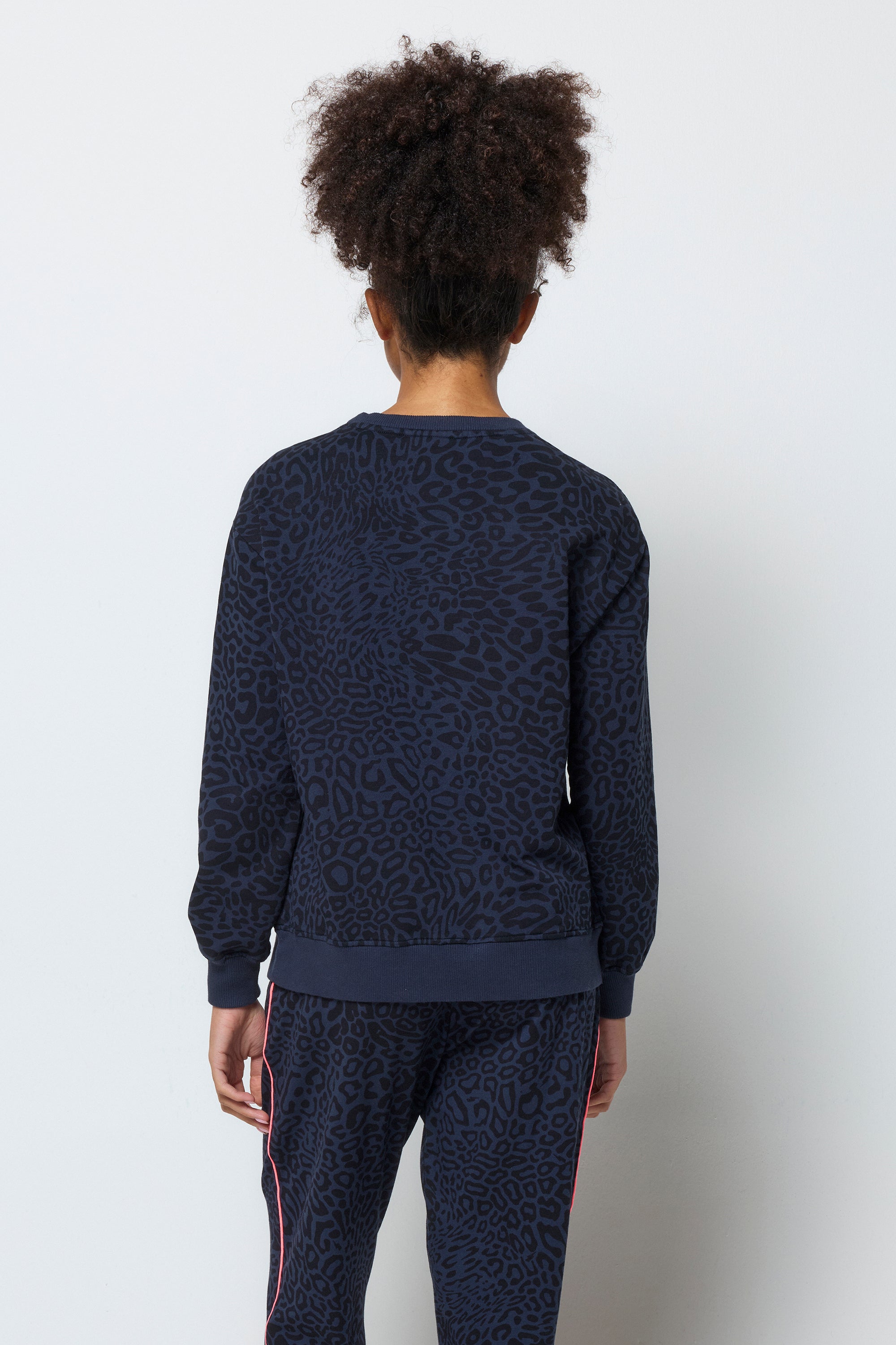 Amp up your casual collection with this navy with black leopard ray and lightning bolt print oversized sweatshirt. It's oversized fit makes it easy to layer, while dropped shoulder seams add to the relaxed feel. The eye-catching design is bound to draw attention wherever you go.