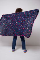 A super-soft, superpower-infused scarf in our navy with pink snow leopard and lightning bolt print. Featuring a pink pom pom trim and neon pink embroidered lightning bolt Superpower Button.