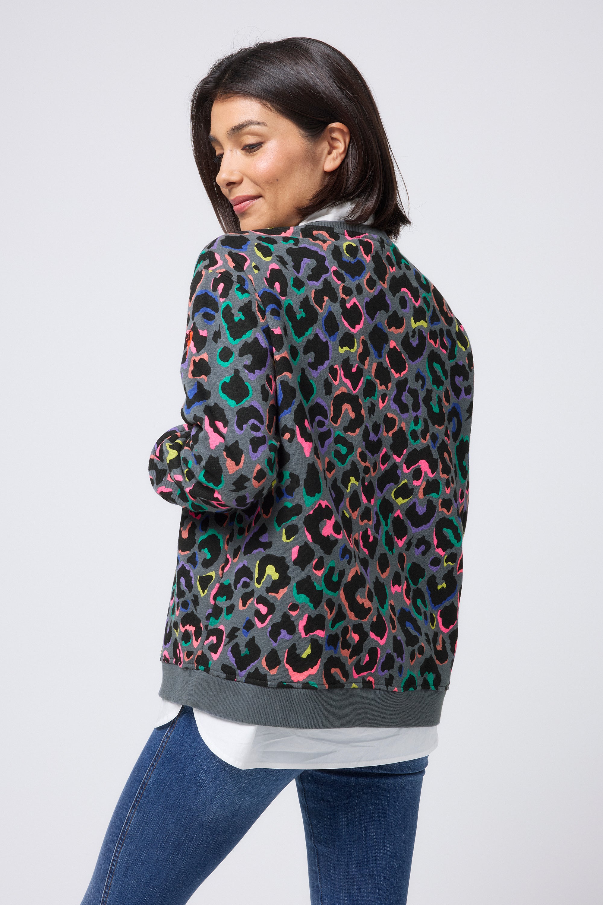 Grey with Rainbow Shadow Leopard Oversized Sweatshirt