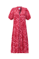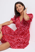 Crafted from soft viscose crepe this pink and red zip detail tiered short dress is all about off-duty charm. It's crafted with romantic short blouson sleeves, a smart v-neckline and a contrast zip fastening. For a flattering silhouette, the short length skirt fall in tiers in a flattering fit and flare style.