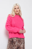 A winter classic, our soft, pink cable knit jumper is a wardrobe staple and a must-have for snuggling up this season. This charming soft knit boasts an eye-catching neon pink hue. For seasonal chic pair with a denim skirt or jeans.