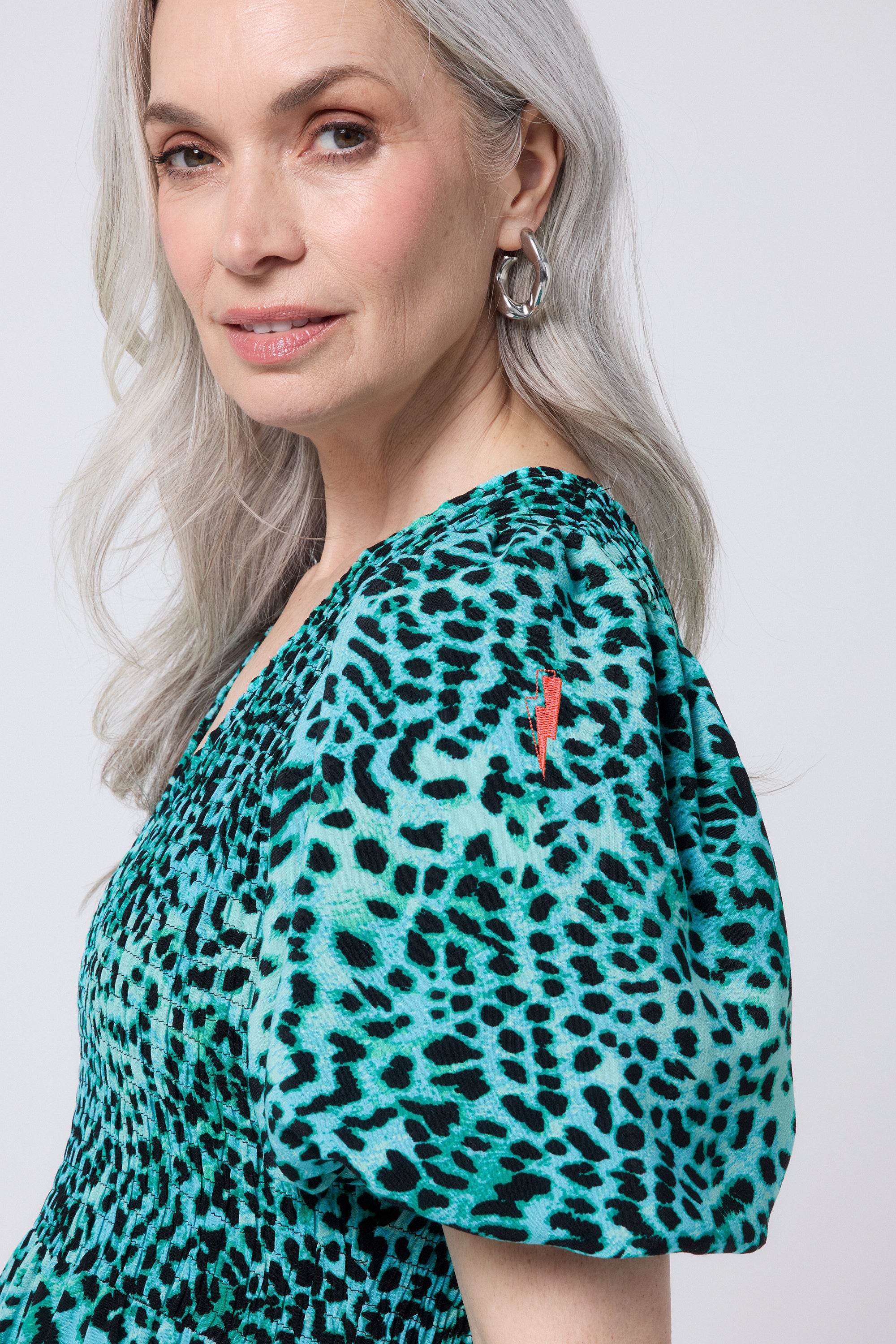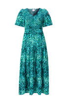 A timeless addition to your wardrobe, our turquoise with black leopard maxi dress was designed to impress. With short puffed sleeves, a tiered skirt and vintage-inspired shirred bust detailing, it's definitely a need - not a want.