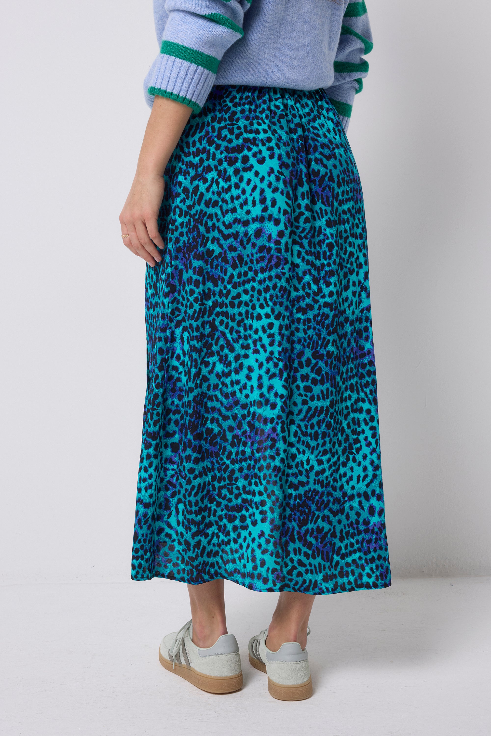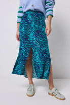 COMING SOON: Turquoise with Blue Cheetah Split Front Skirt