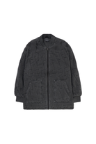 Washed Black Lightning Bolt Oversized Quilted Bomber Jacket
