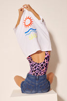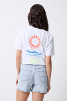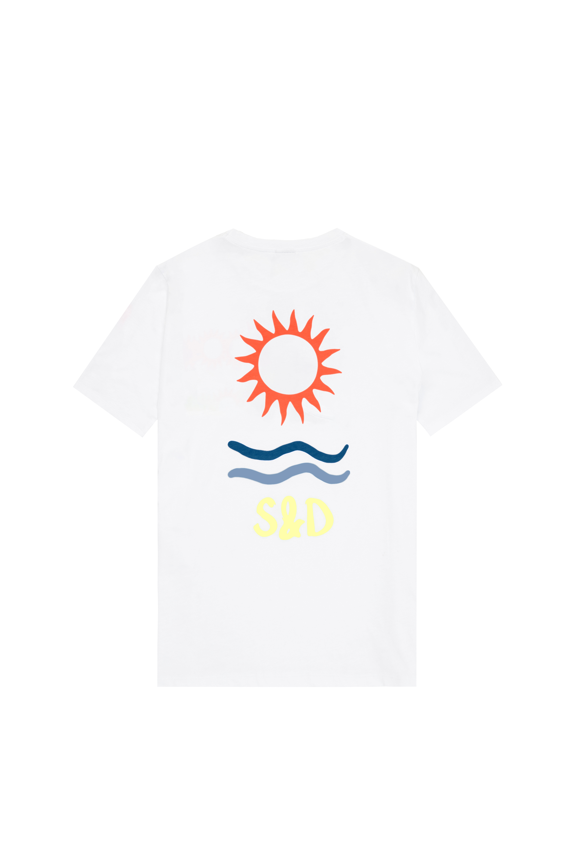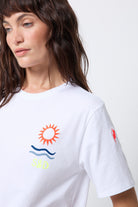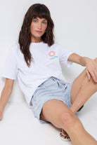 Our white T-shirt with sun graphic print will become your off-duty staple. It's stylish, comfy and filled with superpowers. Complete the look with a pair of flattering Scamp & Dude jeans.