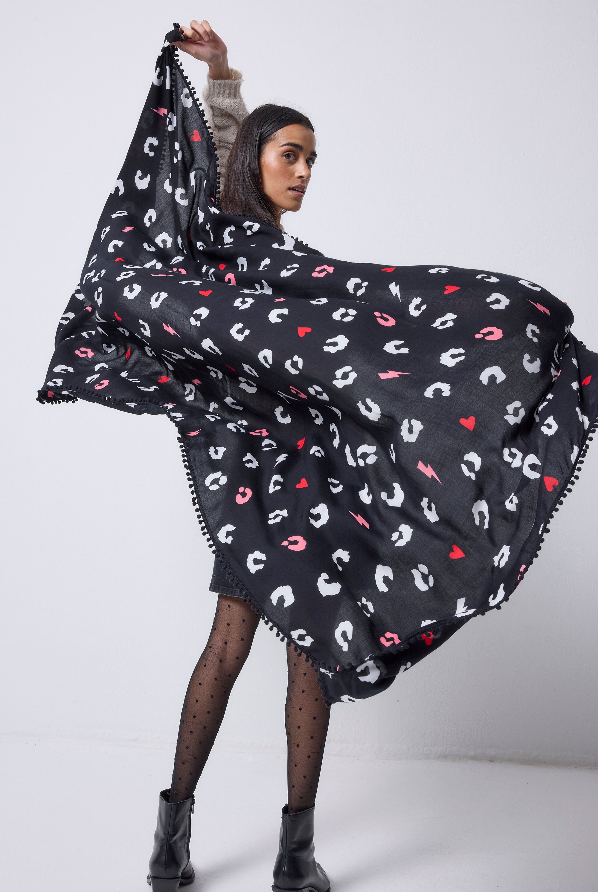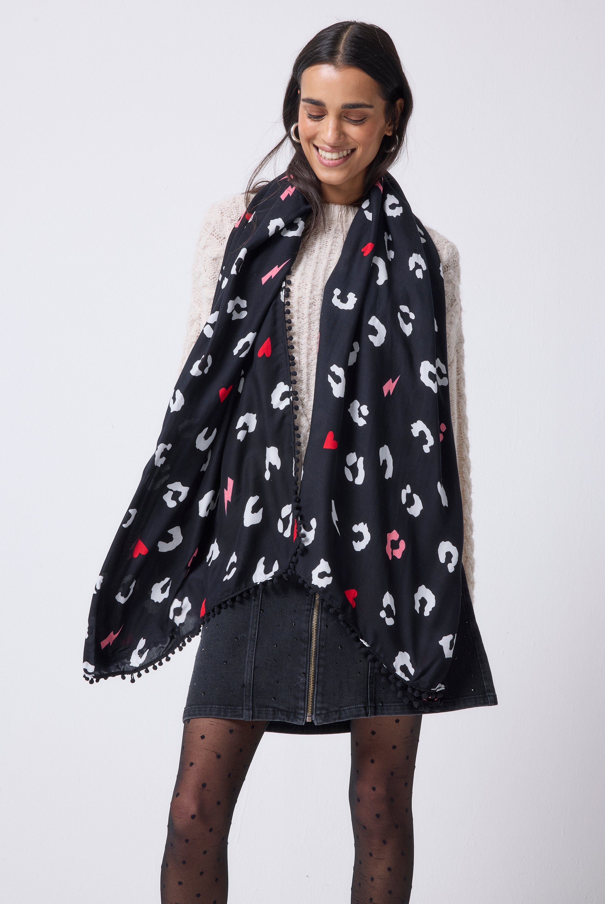 3 reviewsBlack with White Love Leopard Charity Super Scarf
